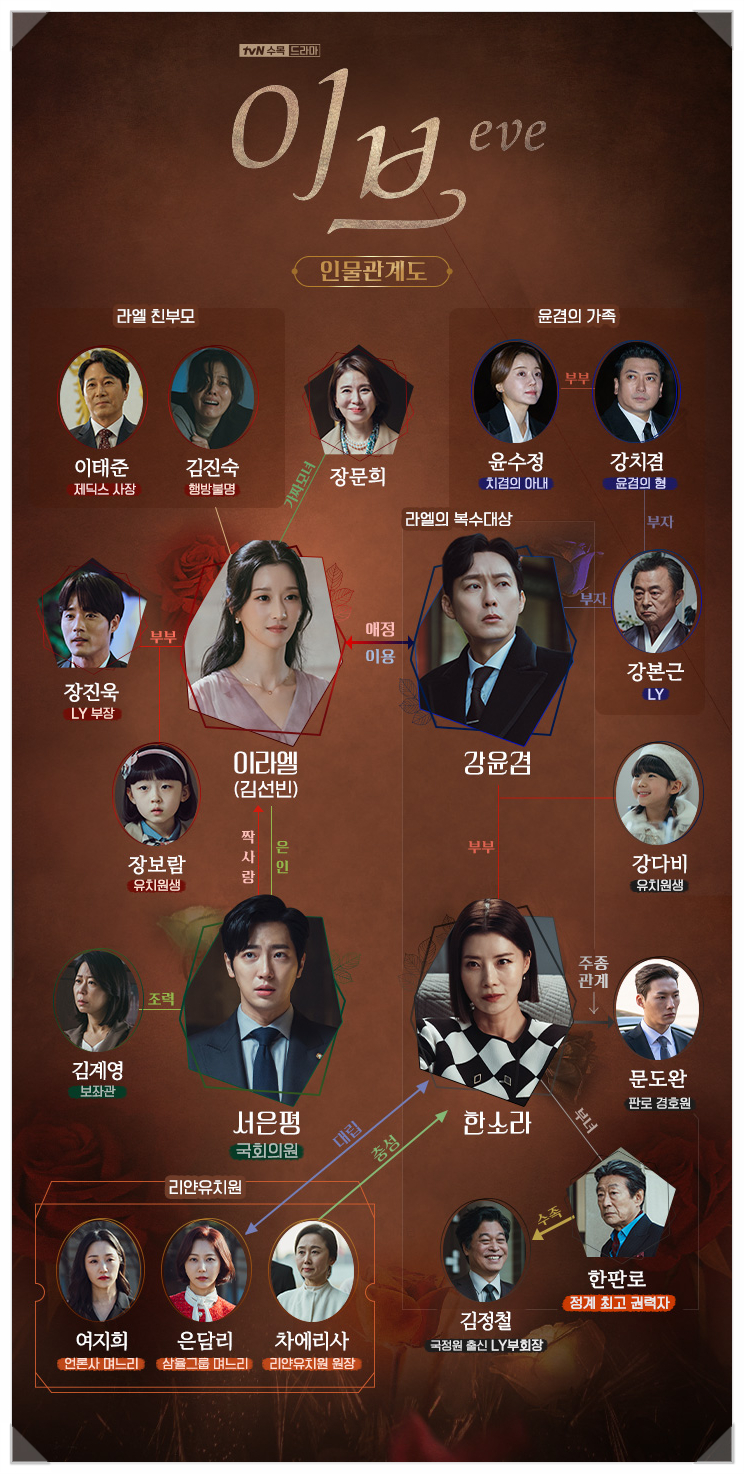 파격 변신을 예고한 드라마 이브는 1, 2회에서는 19금 편성으로 보실 겁니다. 원래 첫 방송일이 25일이었는데 연기할 때까지 이슈를 정리해 온 작품인 만큼 1회부터 궁금하시거나 욕하시거나! 아무튼 기대는 해보겠습니다. 🙂 드라마 이브의 인물관계도