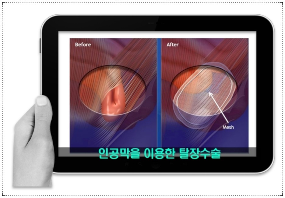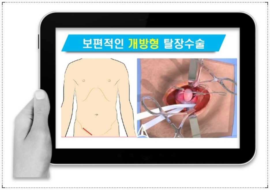 혜부탈장수술의 경우 치료 후 통증 감소와 빠른 일상 복귀를 원하신다면 반드시 피부에 cm 단위의 절개를 하는 개방형 교정술인지 아니면 mm 단위의 2~3개의 포털에서만 이루어지는 복강경수술인지 반드시 확인해 보셔야 합니다.