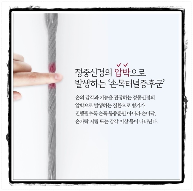 증상에 대해 자세히 말하면 엄지와 둘째 손가락, 셋째 손가락이 저리고 아프며, 머리 관절 근처가 뻐근한 증상을 느끼게 됩니다.