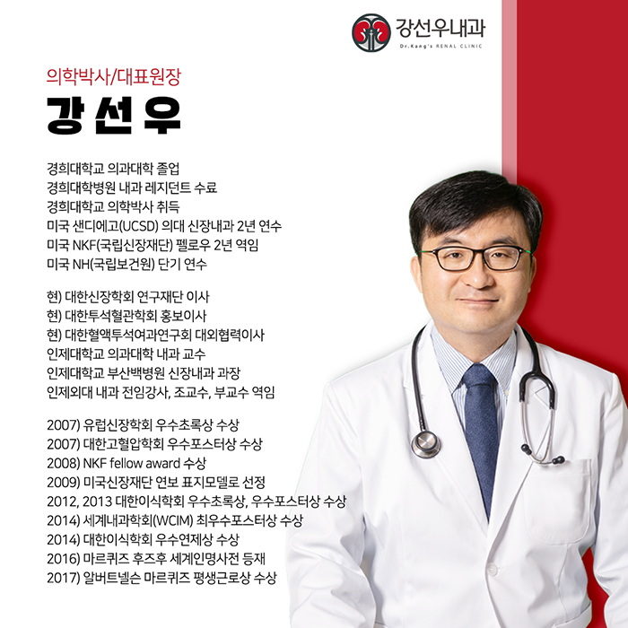 강성우내과는 17년 이상 임상경험을 가진 의학박사 대표원장이 직접 진료하고 있기 때문에 섬세한 치료계획 및 질환개선에 많은 도움을 받을 수 있을 것으로 사료됩니다.