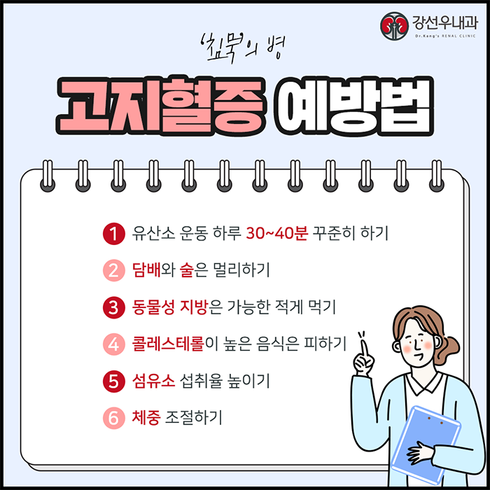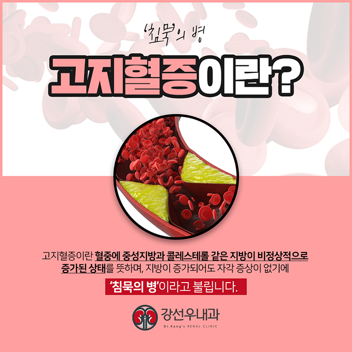고지혈증은 혈중 콜레스테롤과 중성지질 농도가 비정상적으로 증가한 상태로 고혈압이나 흡연과 함께 관상동맥 질환의 3대 위험인자로 알려져 있습니다.