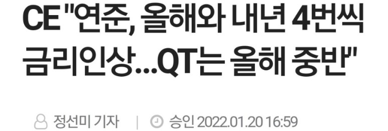 2. 미연준이 작년 말부터 금리인상을 예고했다는건 다 알걸? 새해가 되면서 그 예고가 가시화될 것으로 보인다.