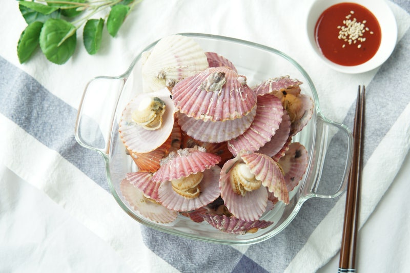 그래서 조개껍질에 묻어 있는 더러운 이물질만 흐르는 물에 솔질을 해서 닦아내는데 이때 굳이 뜨개질이라든지 제거하기 어려운 것까지 깨끗이 제거할 필요는 없습니다.