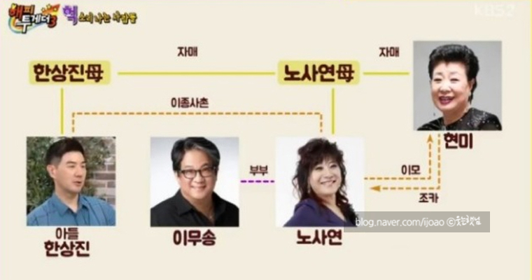 가족관계상 노사봉과 노사영의 이모이자 배우인 한상진 또한 조카인