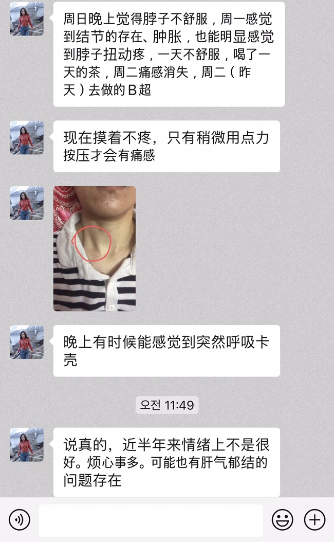 베이징에서 진료를 받던 환자인데 고향으로 돌아갔다고 한다.갑상선 초음파 검사 결과가 보내졌다. TI-RADS 3타입이다. TI-RADS는 갑상선 낭포를 분류하는 타입이다.3형은 암일 가능성이 매우 낮다. 약 15% 이하. 병원에서 수술하라고 해도 환자는 수술하고 싶지 않다고 했다.