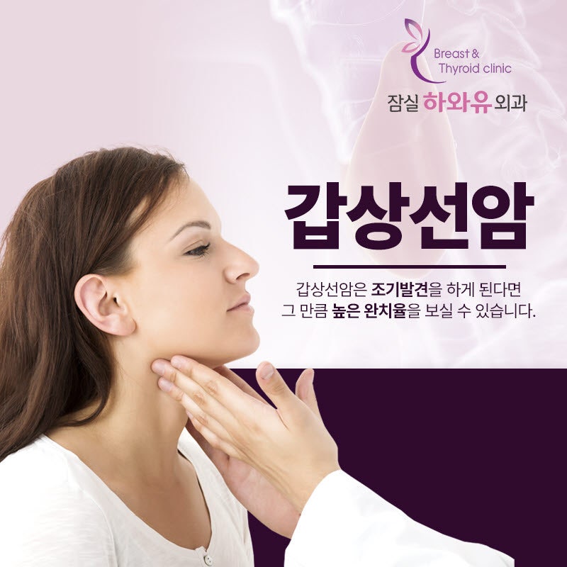 갑상선암은 아까 말했듯이 좋은 암이라고 불릴 정도로 증상이 느려집니다. 보통 갑상선 결절이 의심되어 검진을 받은 후 조직검사에서 갑상선암을 발견하는 경우가 많습니다. 따라서 목 앞에 혹이 닿으면 갑상선암 여부를 검사하게 되는데, 그 혹의 크기가 점점 커지면서 목 기도나 식도를 눌러 호흡이 어려워지거나 음식을 삼키기 어렵거나 목소리가 갑자기 바뀌는 경우, 가족 중 갑상선암 환자가 있는 경우 갑상선암일 확률이 높아 빨리 병원에서 정확한 검진과 함께 초기에 치료를 받는 것이 좋습니다.