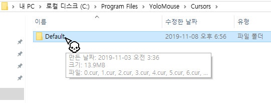위 사진이 현재 내가 넣은 커서 파일을 포함하는 프로그램 폴더다.