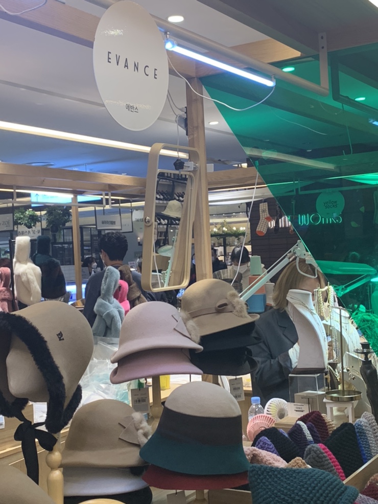팝업스토어에서 에반스 모자를 확인하고 에반스 쇼핑몰에서 구입했다