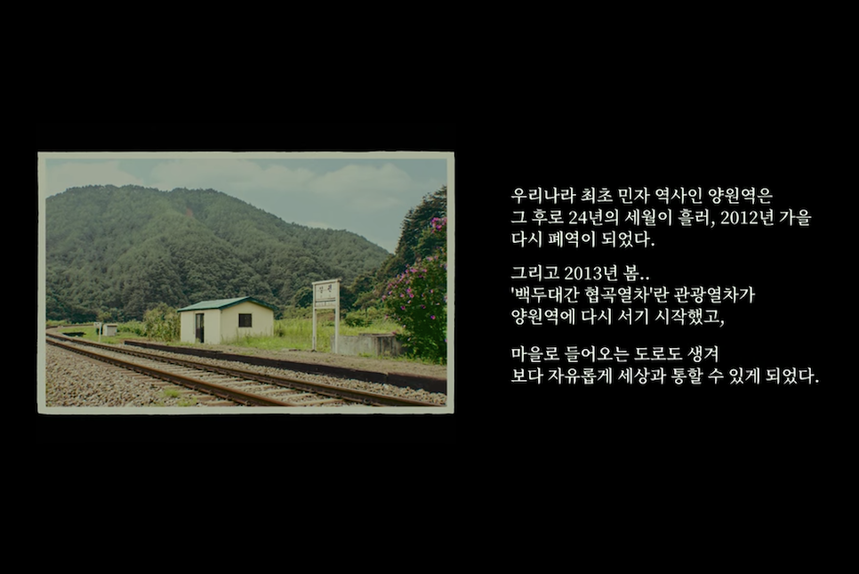 잠시 후 양원역에 대한 설명이 나온다. 그로부터 24년의 세월이 흘러 2012년 가을 다시 폐역됐다고 한다. 그리고 2013년 봄 백두대간협곡열차라는 관광열차가 다시 양원역에 정차하면서 마을로 들어가는 도로도 생겨 좀 더 자유롭게 세상과 통하게 되었다.라는 글이 있다.