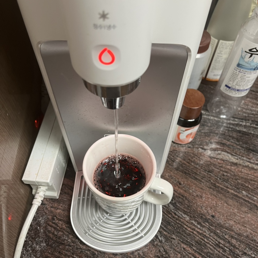 그래서 저는 낮에는 탄산수나 냉수로 차갑게 마시고 밤에 자기 전에는 꿀잠을 자기 위해서 따뜻한 물로 체리차를 마셨어요!?