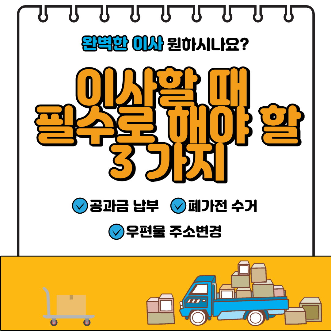 안녕하세요^^부천의 대표 부동산인 삼천리부동산입니다.이사를 앞두고 있는 분들은 이사 전후에 처리해야 할 많은 일들이 있습니다.그 중 공과금 관련 부분은 사실 그렇게 복잡하지는 않지만 처음 이사하시는 분들이라면 걱정이 되는 부분입니다.이사 전 공과금 정산에 대해 알아보겠습니다.