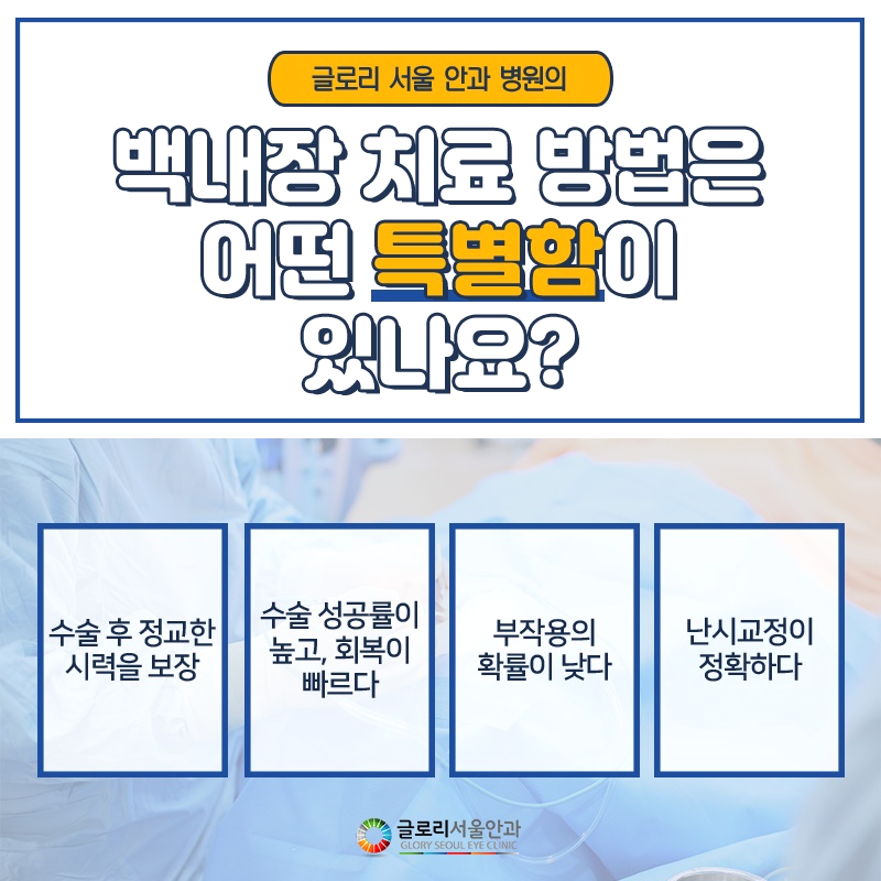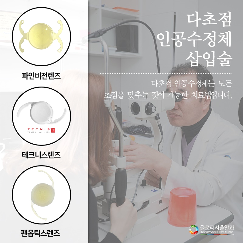 하지만 정밀 진단이 수반되지 않으면 만족도는 다소 떨어질 수도 있습니다.사람에 따라 눈의 상태와 특징, 눈을 둘러싼 생활 환경의 차이가 있으므로, 개선 전의 세세한 진단을 거쳐, 백내장이 되는 이유와 내 눈의 세세한 요소를 면밀히 체크하는 것이 중요합니다. 수정체, 망막, 각막을 확인하는 70가지 진단을 통해 눈은 물론 직업과 취미, 나이 등 라이프스타일을 고려해 자신에게 딱 맞는 교정방법을 찾아야 원활하게 눈을 개선하고 시력을 유지할 수 있습니다.아울러 눈에 들어오는 인공수정체는 한번 삽입된 후 교체되거나 제거되는 경우가 적음을 숙지해주시고 이 또한 의료진과의 충분한 상담을 통해 신중히 결정해주시기 바랍니다.
