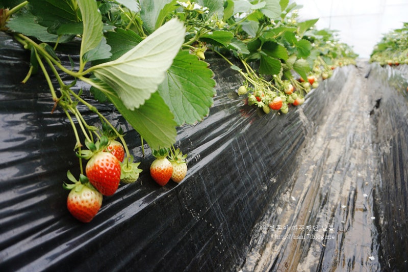 농장에 도착하니 마침 갑자기 소나기가 주룩주룩~~ 비닐하우스 안에서 빗소리를 들으니 또 운치가 있었어요. 비오는 날 아이들과 함께 오기 정말 좋을 것 같아요.농장에 들어오자마자 딸기냄새가~ 오랜만에 초록빛으로 들어가서 기분도 좋아요~^^