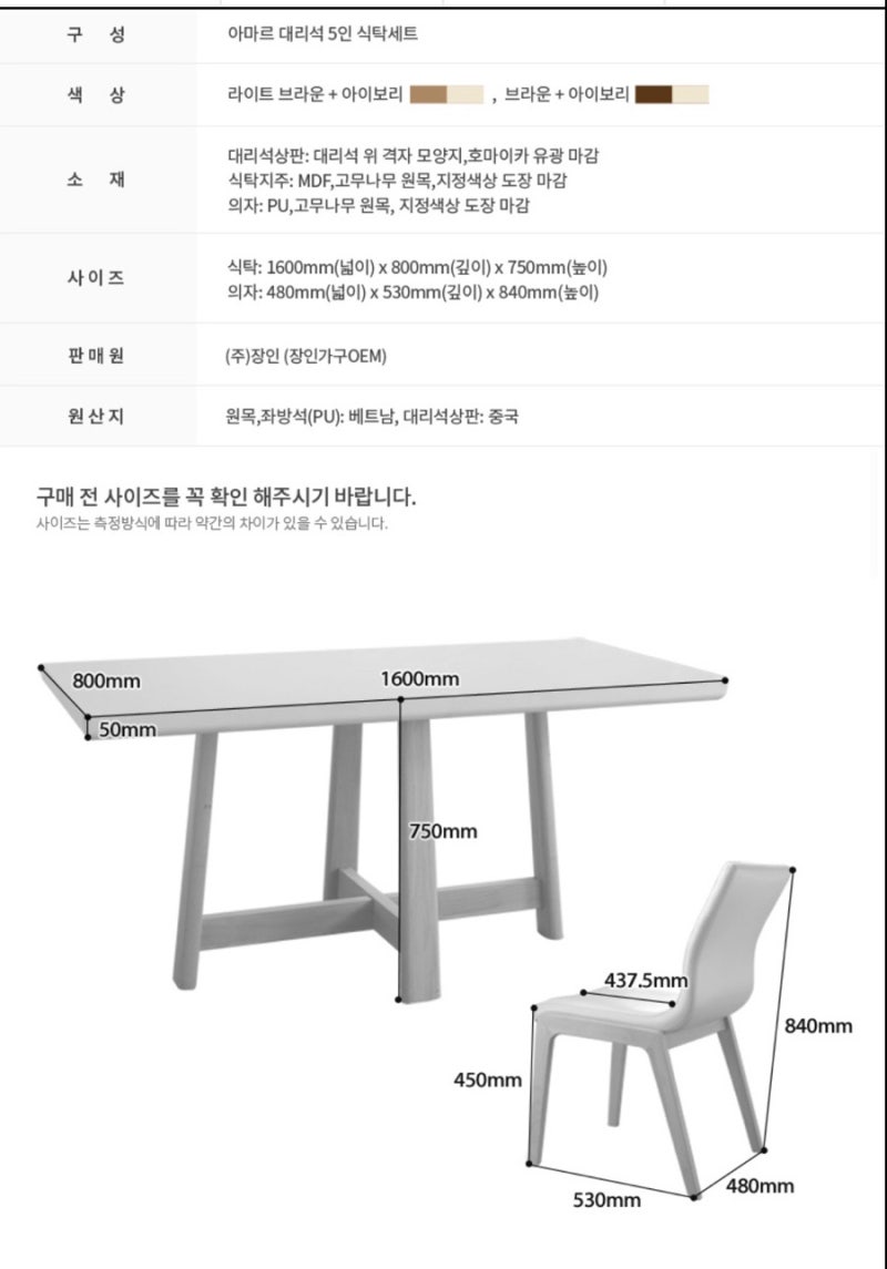 5인용 세트는 6인용 식탁 사이즈에 의자만 5개 제품입니다.식탁 사이즈는 1600*800