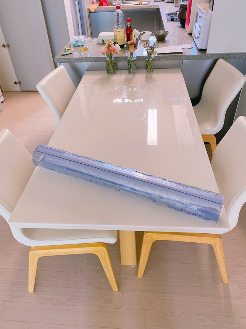 며칠 쓰다보니 상처가 걱정되서(꼼꼼히 관리가 안되네요. ㅋㅋㅋ오래깔끔하게 사용할 목적으로 #유리매트를 주문했습니다.#식탁매트 #식탁유리