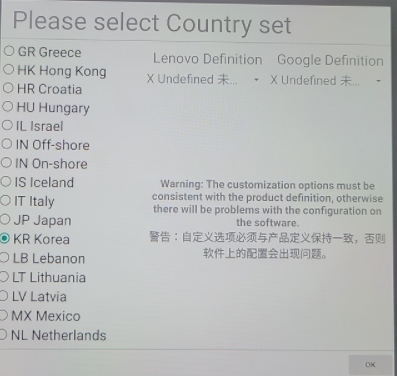 국가코드변경 설정창이 나타납니다. KR 을 설정해주세요.해당 설정을 완료하면 reboot되어 새롭게 설정을 진행합니다.