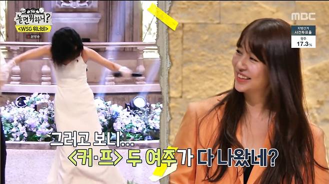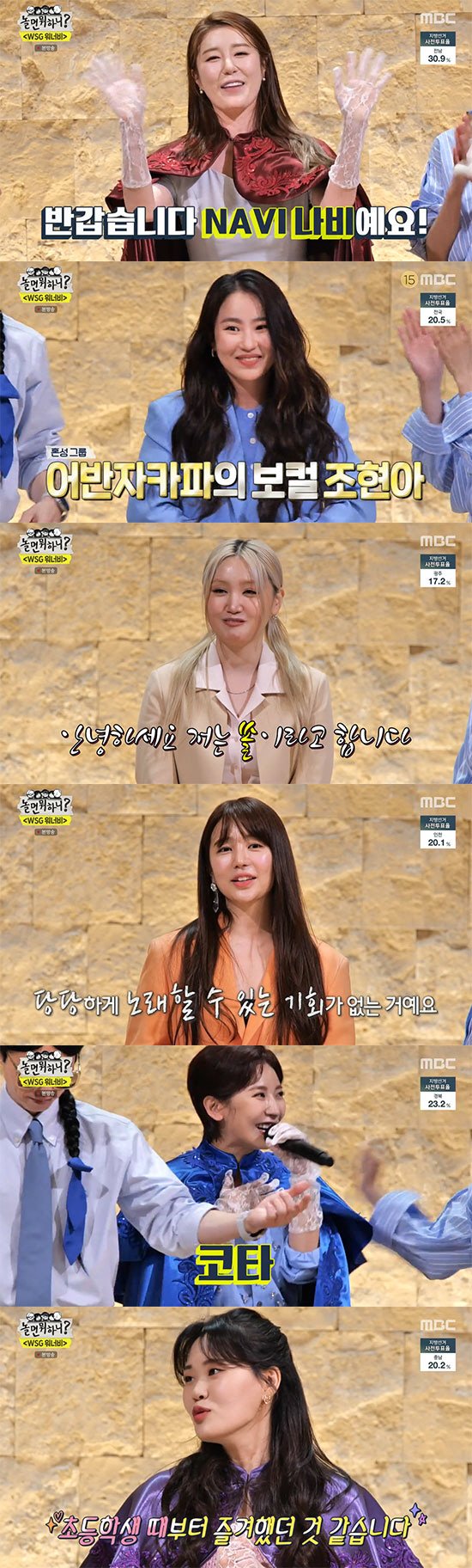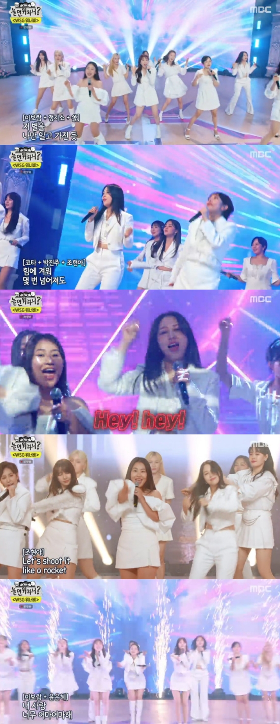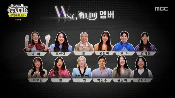 MBC ‘놀면 뭐하니?’ 140회에서는 WSG워너비12(윤은혜, 나비, 이보람, 코타, 박진주, 조현아, SOLE(솔), 서연, 엄지윤, 권진아, HYNN(박혜원), 정지소가 한자리에 모이는 첫 대면식이 진행됐다.이날 WSG워너비 멤버들은 다 같이 조별 경연 무대를 감상했습니다. 서로에 대해 알아가는 시간을 갖고 WSG워너비 12인의 첫 단체곡인 ‘대박’ 합동 무대를 펼쳐 눈길을 끌었습니다.