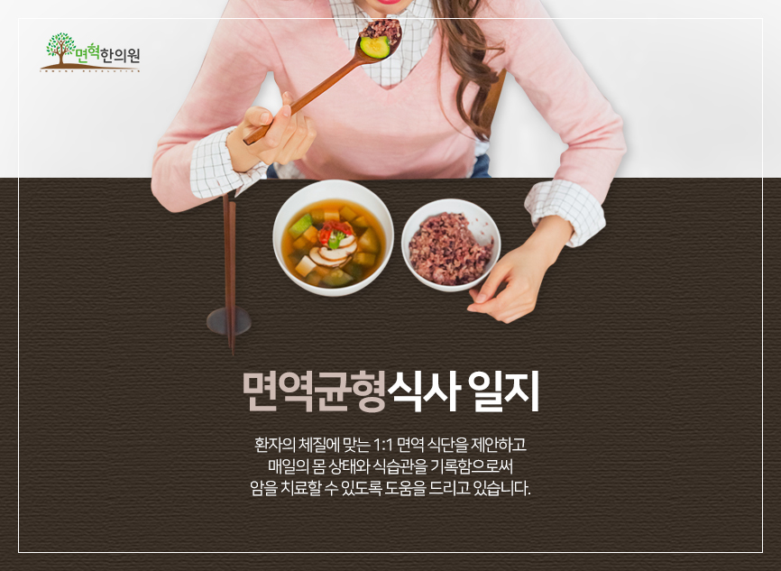 수성구 한의원, 면혁 한의원에서는 면역균형 식사일지를 작성하여 식단관리에 도움을 주고 있습니다. 환자의 상태와 체질을 고려해서 1:1 면역 요법을 제안하고 있는데요.