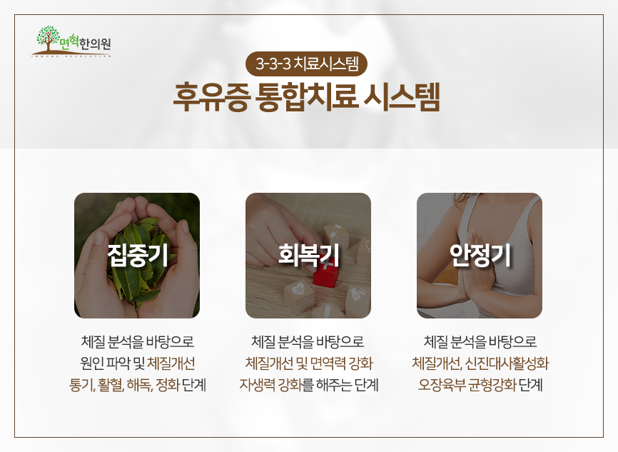 수성구갑상선암의원, 면혁한의원에서는 자체 항암치료인 3-3-3 통합치료시스템을 통해 면역관리 치료를 시행하고 있습니다.