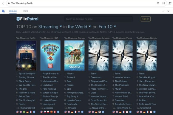 영화 ‘승리호’가 넷플릭스 80개국에서 1위를 하고 영화 부문에서 세계 랭킹 1위를 하고 있다는 기사가 보여서 넷플릭스 주간 랭킹을 어디서 1위를 찾아봤다.