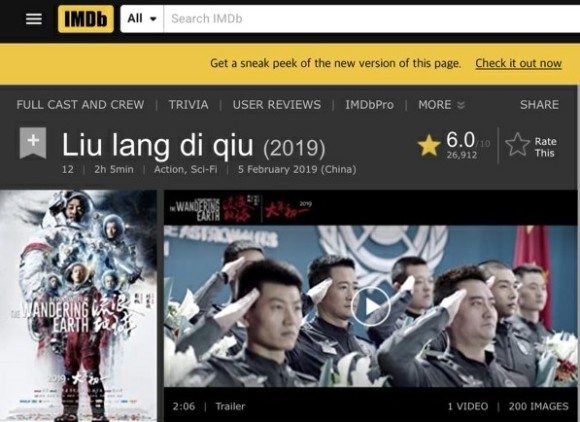 그래도 iMDb는 비교적 공평하다. 유랑지구의 별점을 보면.