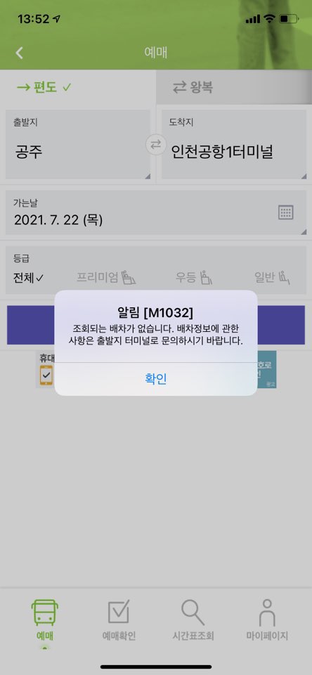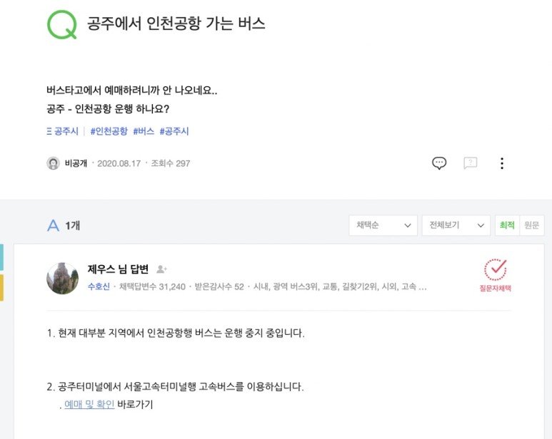 터키항공을 취소한 날 공주에서 인천공항 가는 버스 시간표를 보기 위해 검색을 해보니까