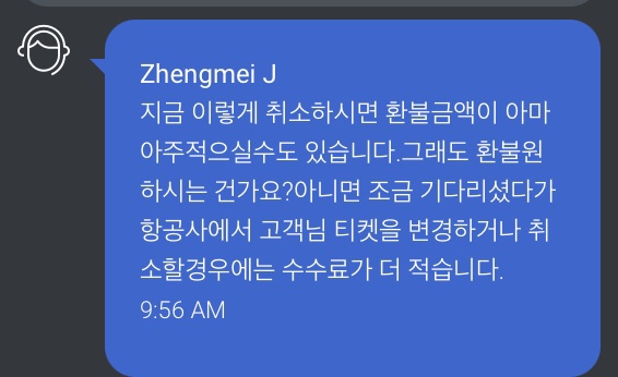 그래서 대행사 측에서도 환불 금액이 너무 적다는 걸 알고 있으니 항공사 측에서 취소할 수도 있다고 기다려 보라고 했지만, 과연 취소될지 모르기 때문에 터키항공에 “우리가 취소를 하고 싶어서 취소하는 게 아니다” ㅠㅠ국가의 방침이 그러한데 어떻게 해야 하는지 ㅠㅠ수수료 없이 취소해달라ㅠㅠㅠㅠ문의까지 남겨둔 상태 ^^^^^^근데 제가 취소하는 것이 아니다.