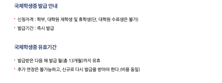 교환학생 합격 후 진행된 오리엔테이션에서 설명했듯이 국제학생증은 국제처에서 발급하지 않고 ‘학교 홈페이지-학생지원 메뉴’에서 신청할 수 있다.