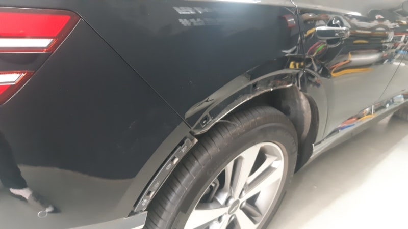 대구 제네시스 뒷펜더 찌그러짐 덴트복원 대구덴트샵 제네시스 GV80 조수석 뒷펜더 크게 찌그러짐 복원률 95% 이상