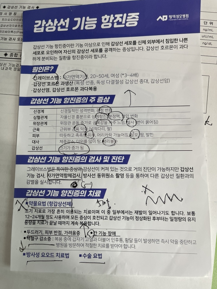 다시 집에 돌아와서 2시간 후에 결과를 들으러 갔다. 결과는 갑상샘 기능 항진증.