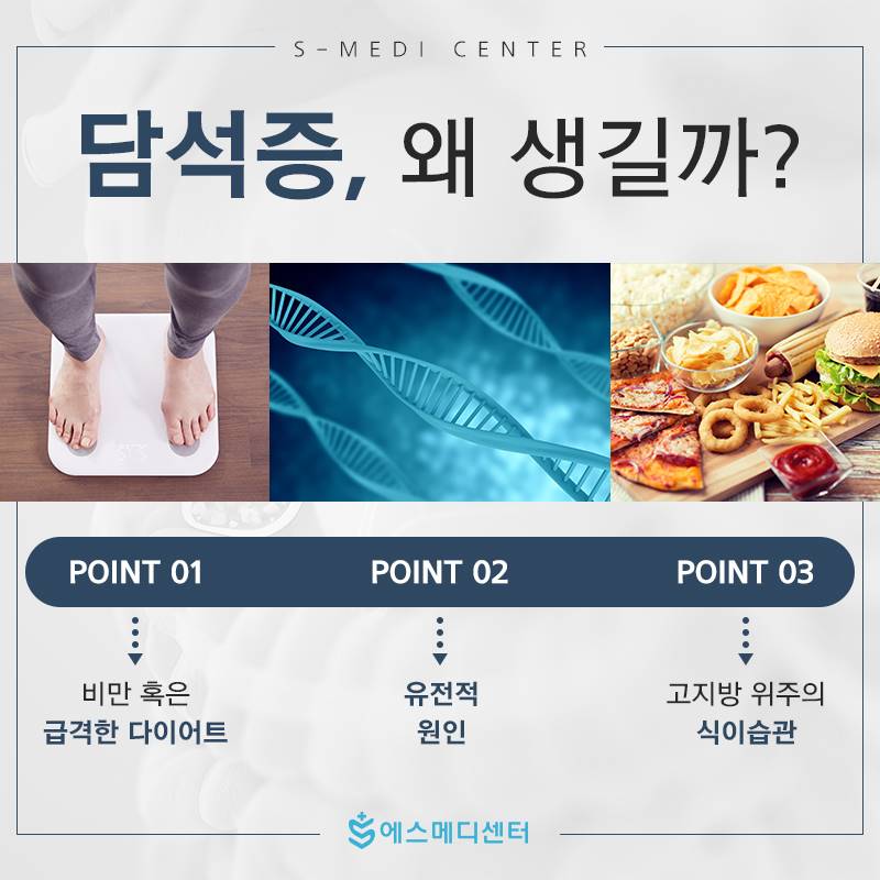 극도의 다이어트로 갑자기 체중을 줄인 분, 오랫동안 금식하신 분, 짜고 매운 음식을 즐겨 드시는 분은 담낭염 발생 확률이 높아지므로 이러한 원인을 잘 조절하는 것도 개선하는 데 도움이 되는 것이라 할 수 있습니다.초기 증상이 거의 없기 때문에 대부분 초음파나 ct검사를 우연히 시행하여 발견하는 경우가 많습니다. 이런 경우 담석증 치료 방법을 빨리 알아보고 관리해야 합니다.나쁜 위치에 있는 경우는 수술적인 방법으로 빨리 제거하는 것이 좋습니다.