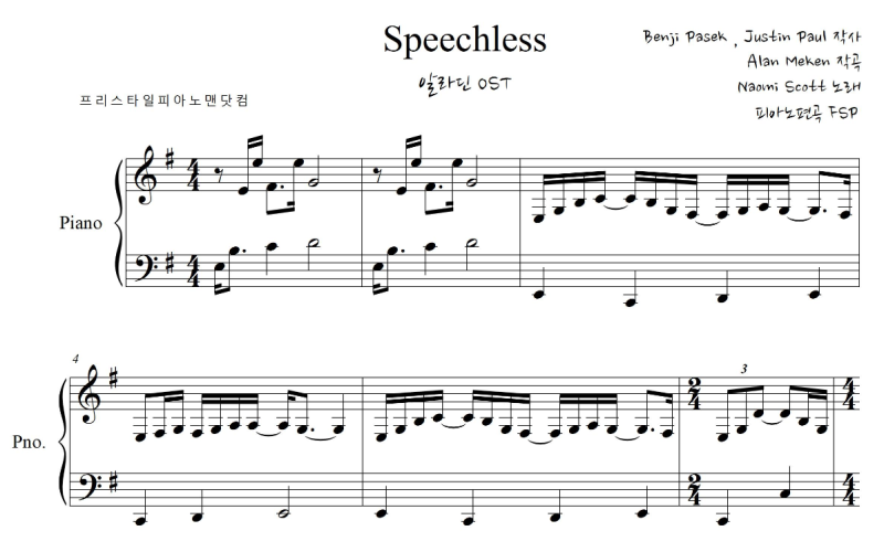 Speechless 레슨을 받은 것은 유튜브를 보다가 디즈니 채널에서 나오미 스콧이 Speechless를 오케스트라 단원의 연주에 맞춰 부르는 것을 보고 큰 감명을 받아 꼭 연주해보고 싶었다.네~Speechless 알라딘 OST