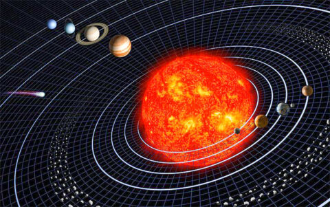 우리의 태양계 모습과 태양 오른쪽에 지구를 포함한 내측 태양계 행성을 좌측 위에 목성과 토성 등 외부 태양계 행성을 나타내고 있다. © Wiki Commons / Harman Smith and Laura Generosa Generosa / NASA’s Jet