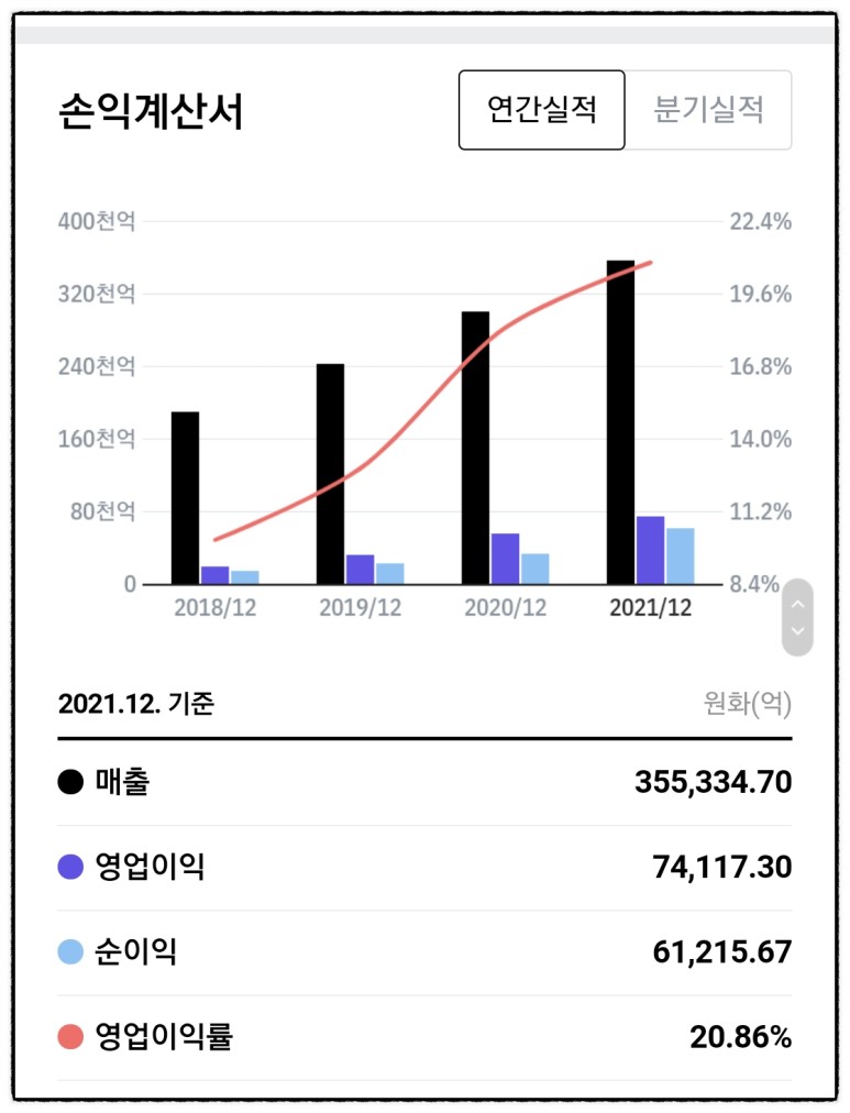 여전히 영업이익만으로 1년에 7조원을 버는 기업입니다.