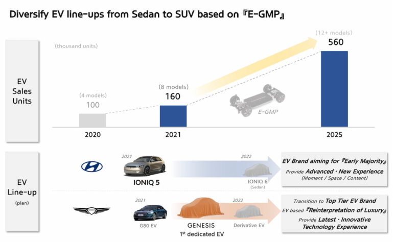 현대는 2025년 이후 모든 차량을 전동화할 계획을 갖고 있으며 25년까지 12개의 EV 모델을 출시하는 것을 목표로 하고 있습니다.