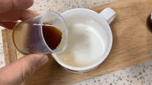 원액이 아니라 더 맛있게 먹으려면! 우유에 타서 먹으면 되는데우유 300ml 정도, 원액 10ml 정도 넣어서 먹으면 되게 맛있어요꿀이 된 우유 같은 맛?아이와 남편도 우유에 타주는 것을 제일 좋아해요.