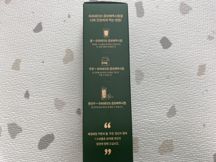 그리고 저는 평소에 차를 많이 마시기 때문에 목이 마른다고 생각하면 물에 원액을 타서 차를 마시는 것처럼 즐깁니다.저는 개인적으로 차로 마시는 게 제일 좋아요!
