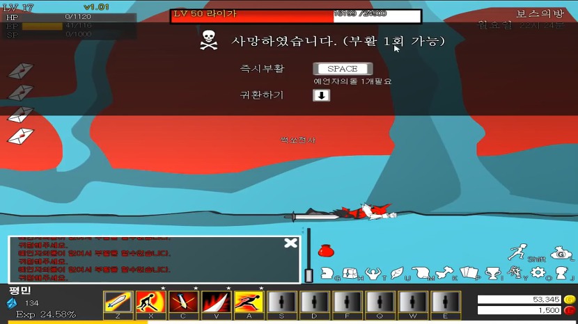 역시 너무 무리한 도전이었던지, 충분히 싸워 이길 수 있다고 생각했지만, 역시 사자 모양의 라이가는 굉장히 강력했습니다.사망하면 부활은 한 번 할 수 있지만, 역시 살아난 곳에서 물러서지 않고 도전에 질 것 같으니 귀환하는 것이 좋겠네요.정말 최고의 스토리인만큼 많은 사랑을 받아온 영웅들의 검 7 명작 플래시 게임을 즐겨보세요.