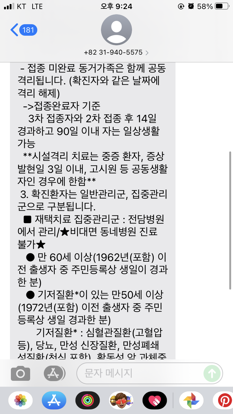 그래도 안내메일이 왔었다고 길게 설명하시는데…재택으로 치료하면 되고 필요할 경우 비대면으로 진료 가능하며 동거인은 격리 해제 전날 PCR을 받으면 된다는 내용.
