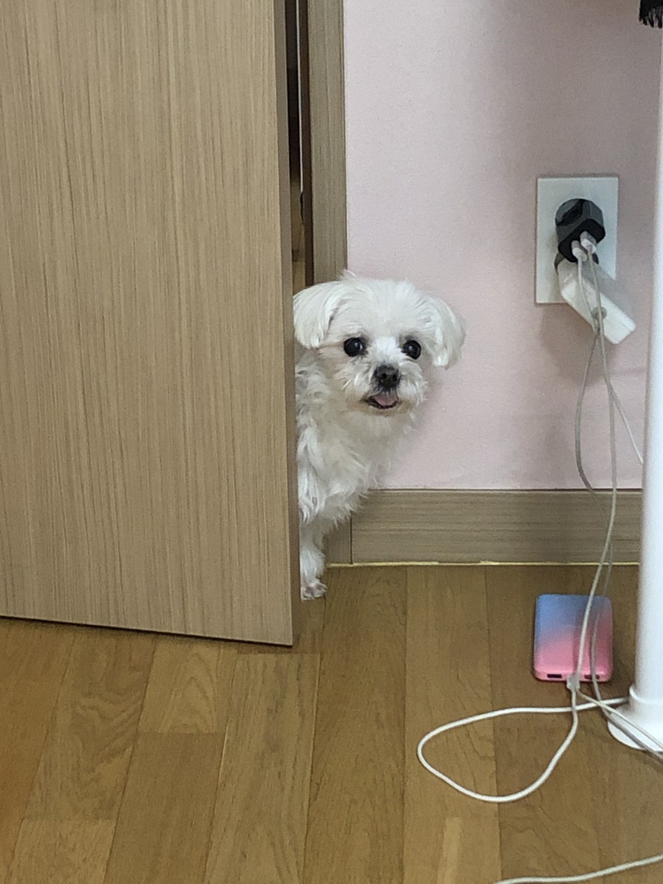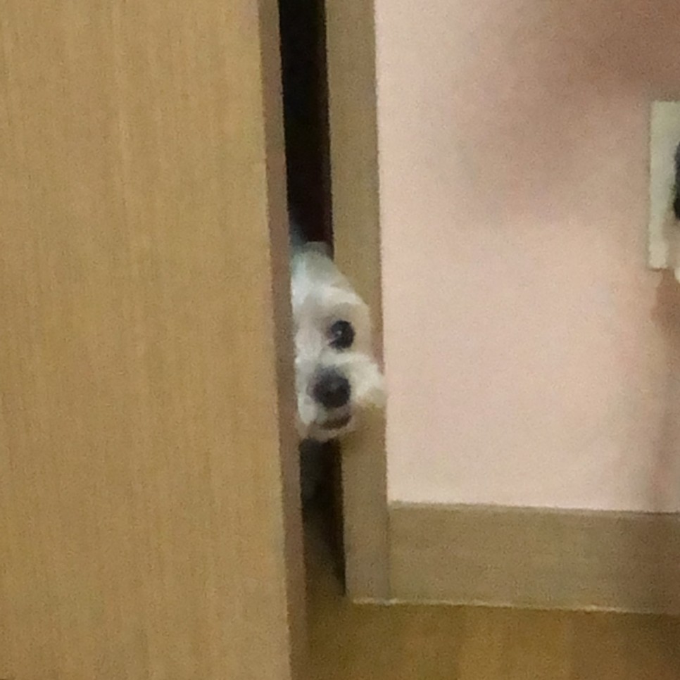 격리 때문에 제가 방에서 안 나오니까 계속 보는 츤데레 개… ㅠㅠ 개는 코로나 감염이 안 된다고 하는데 그래도 불안해서 최대한 접촉을 피했지만 격리생활의 유일한 기쁨 털뭉치