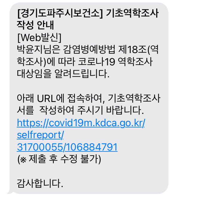역학조사도 URL 설문으로 이뤄지는 지역마다 다른 것 같다.(어떤 지역은 전화로 진행)