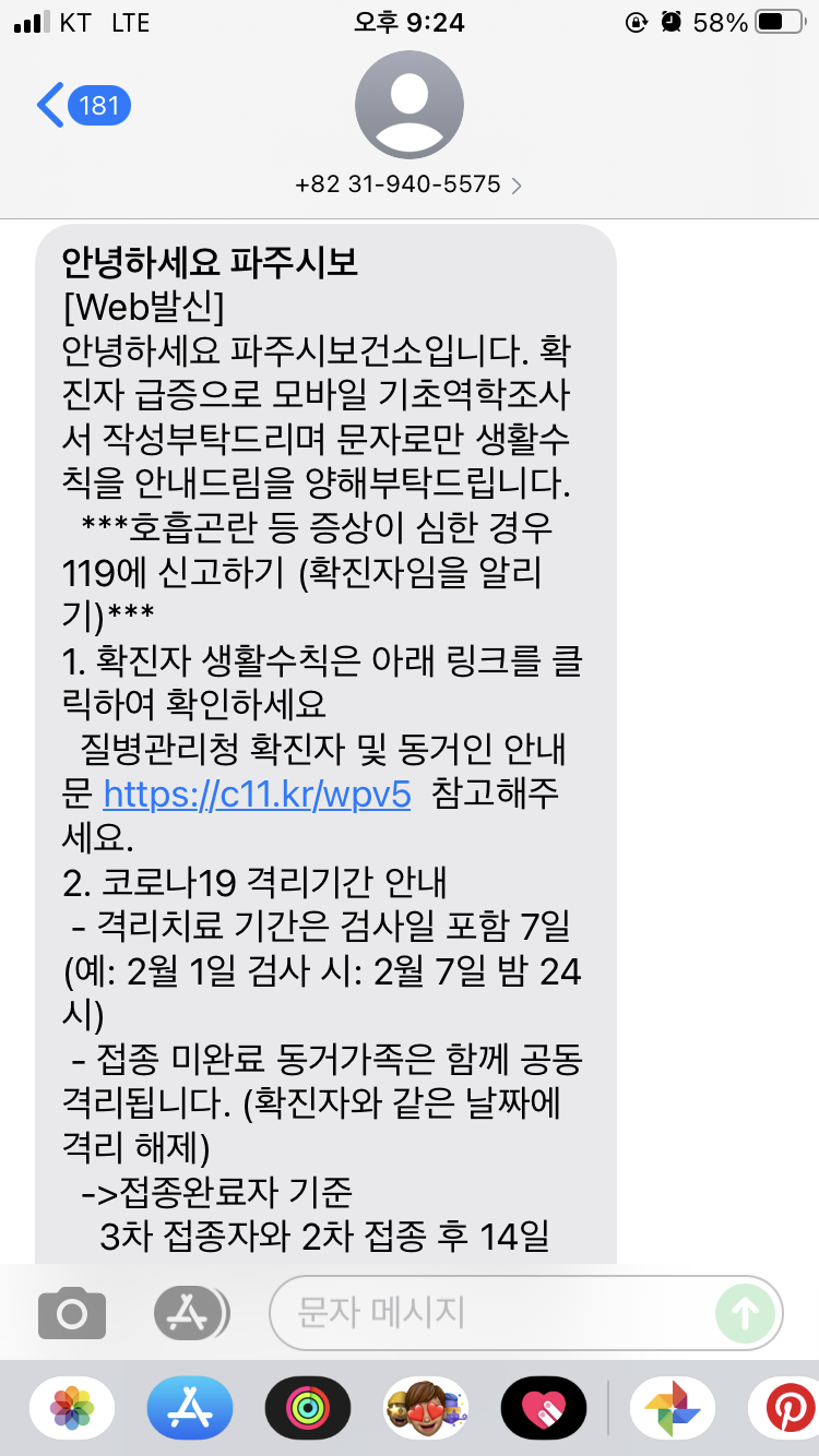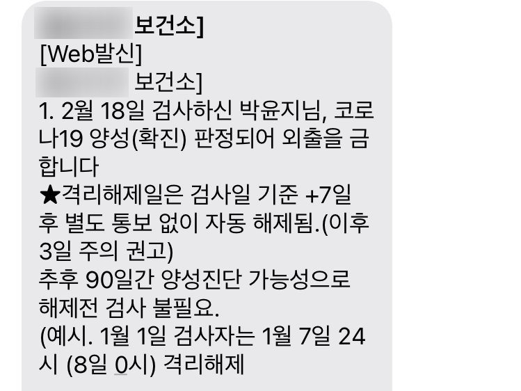 코로나 확진 메일을 토요일에 받아서 월요일이 되면 보건소에서 전화가 올 줄 알았는데 격리가 끝날 때까지 한번도 연락이 오지 않아.