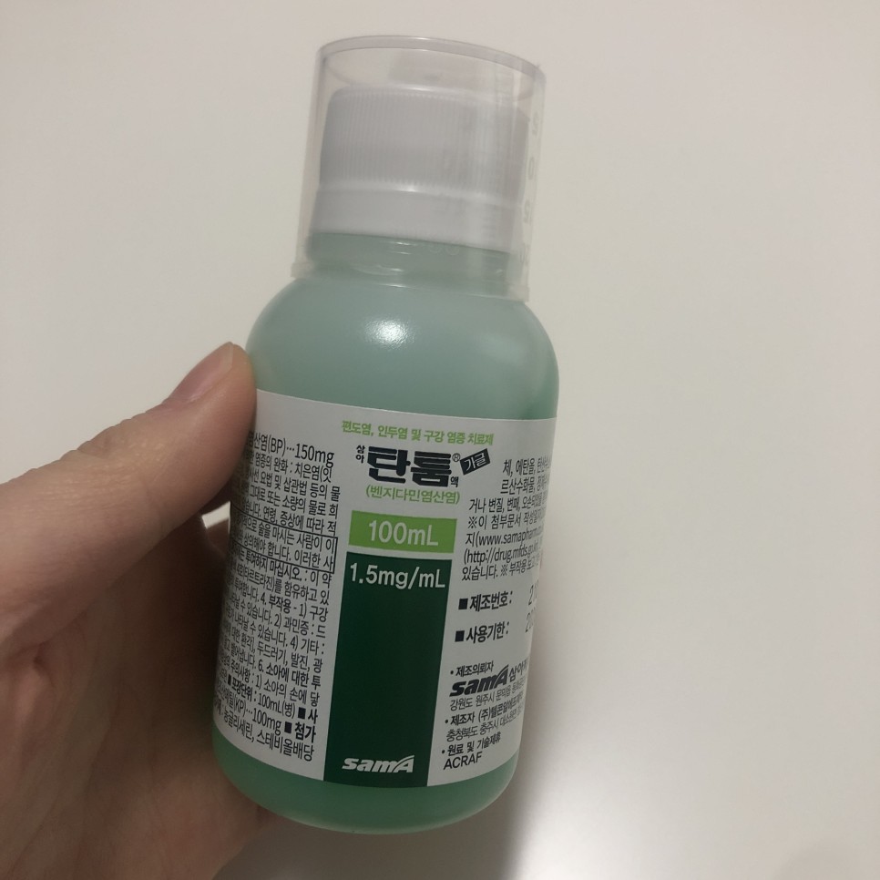 나는 코로나의 목젖 증세로 인후염과 편도선염이 올라 목 전체가 염증으로 뒤덮여 있었다.침을 삼키기도 힘들 정도로 고통스러워 지금 먹는 약보다 독한 약을 처방받고 싶었지만 같은 약을 3일분 처방해주셨다.그래도 요청한 딴뜸 가글은 잘 처방해 주셨다.