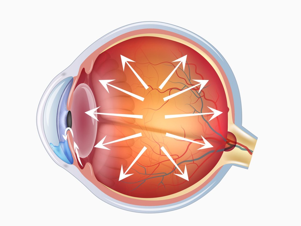 눈에는 방수라는 투명한 액체가 끊임없이 순환합니다. 이 방수가 다양한 원인에 의해 배출에 문제가 발생하면 안압 상승으로 이어집니다.