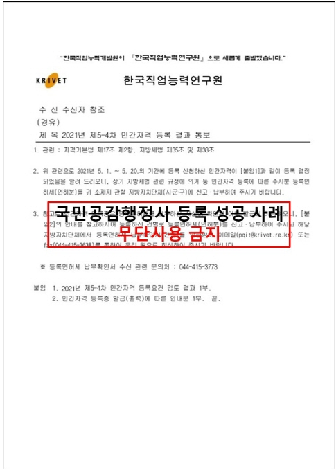 따라서 민간자격증 운영기관으로 등재하기 위해서는 인허가 전문행정사와 상의해서 진행하는 것이 좋습니다.