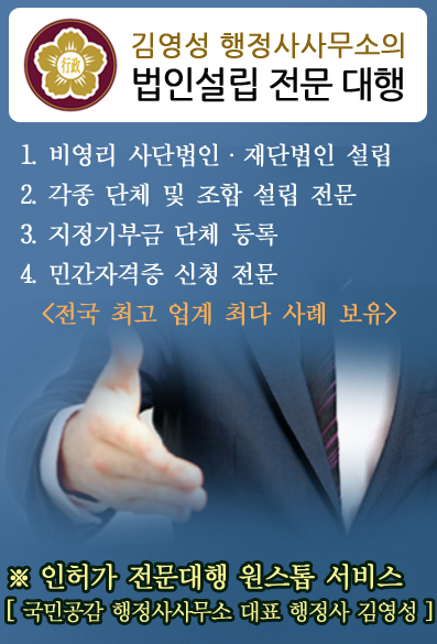 사단법인 설립, 재단법인 설립, 비영리법인, 비영리민간단체 및 각종 사회단체 설립 전문행정사 www. 행정법인 . com