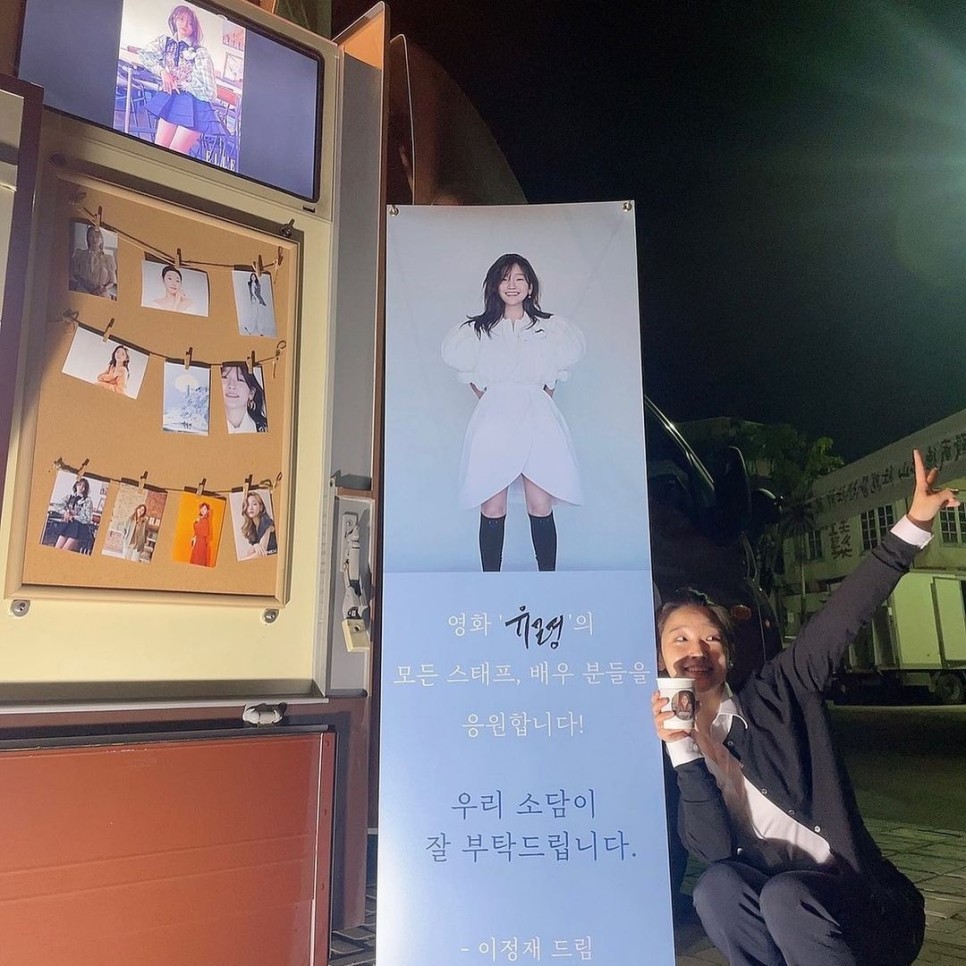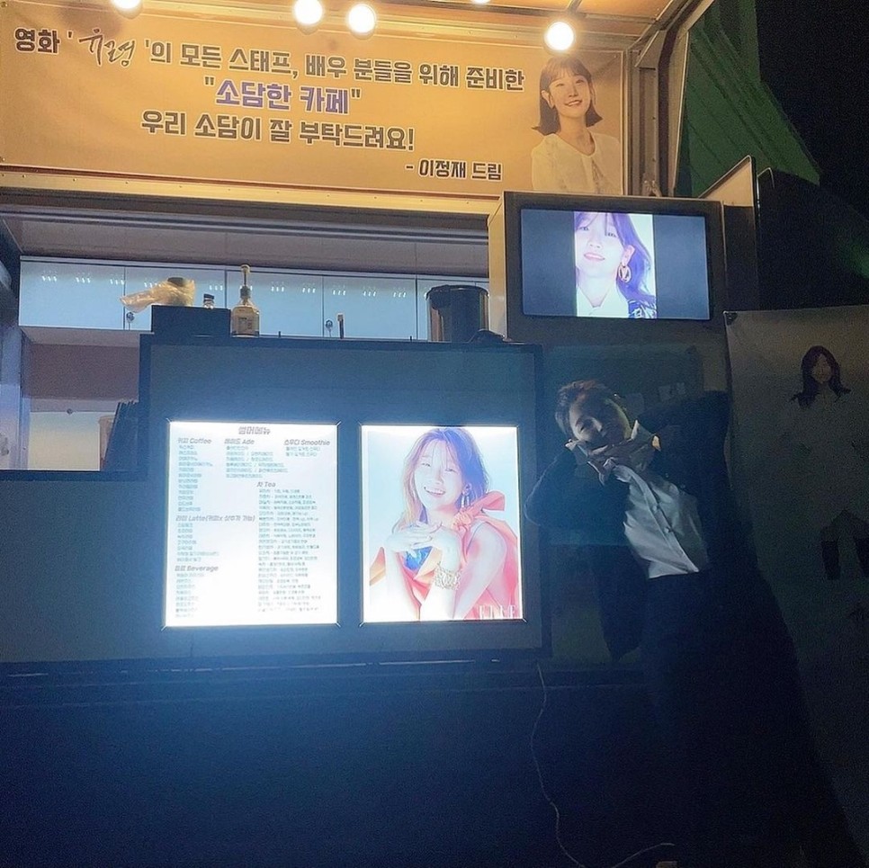 공개된 사진에는, 이정재가 박소담의 영화 촬영 현장에 보낸 커피차의 모습이 찍혀 있다. 특히 이정재가 남긴 “영화 ‘유령’의 전 스태프, 배우분들을 위해 준비한 ‘풍아한 카페’ 소담, 잘 부탁드립니다!”라는 문구가 눈길을 끈다.