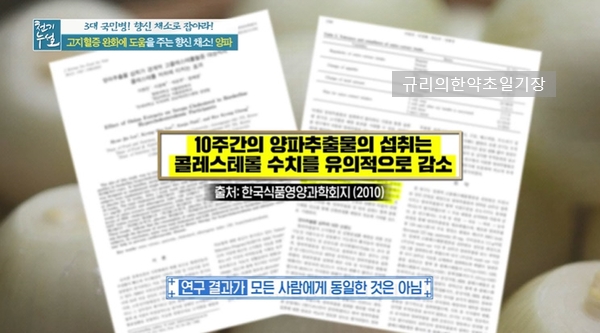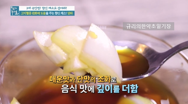 그래서 오늘은 #천기누출체 중 시한폭탄, 고지혈증 증상의 완화에 도움을 주는 영양성분이 무려 150여 가지나 된다고 알려져 있으며, 혈액속의 지방이 쌓이는 것을 막아 혈액청소부로 불리는 한국음식에 빼놓을 수 없는 대표적인 향신채소, 양파효능입니다.