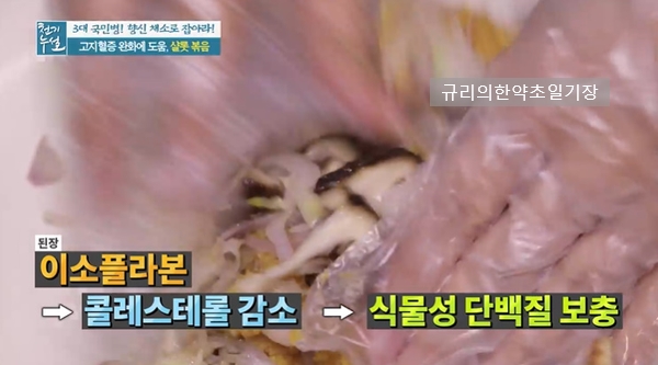 1. 고지혈증 증상 완화 시너지 효과가 있는 샬롯 10개와 표고버섯 2개는 먹기 좋게 썰어 살짝 볶는다2. 양념 재료에 조미료 대신 된장을 넣는 것이 포인트라고 합니다