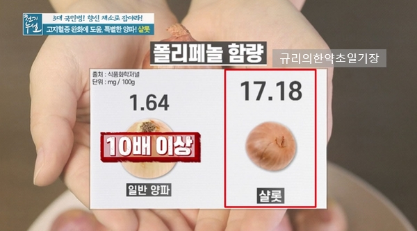 사실 샬롯은 폴리 페놀 성분이 일반 양파와 비교하면 1.64 <샬롯 17.18로 10배 이상 함유되어 있고 혈관 독소를 감소시키는 엽산도 일반 양파에 비해 2배 이상 함유되어 있다고 합니다.